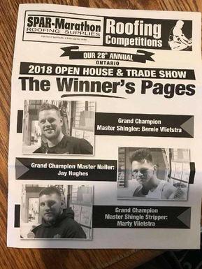 Bernie Vlietstra has won dozens of awards at these competitions, but in past 3 years, he won the entire championship twice! Check out the photos from when he was dubbed "Grand Master Roofer" for 2018 and 2020.